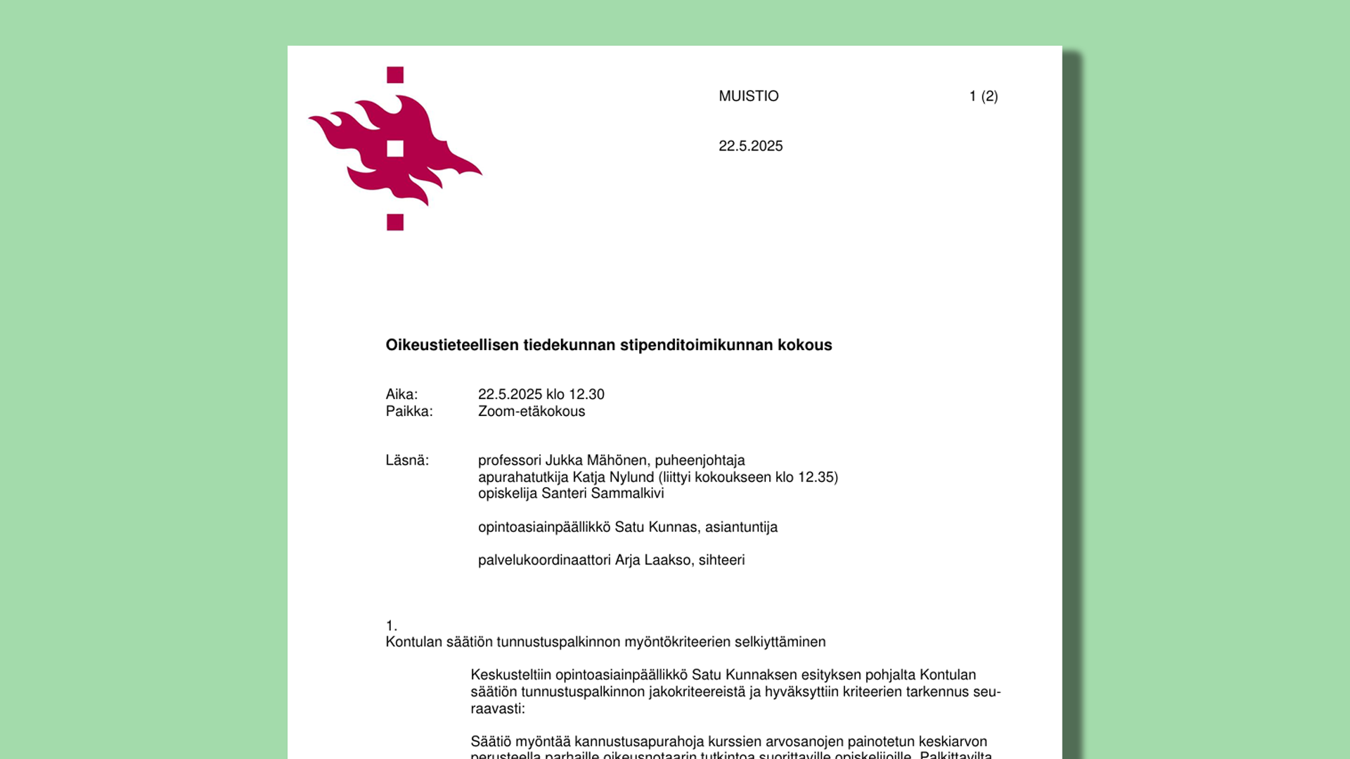Stipenditoimikunta päätti uusista kriteereistä tunnustuspalkinnon myöntämiselle kokouksessaan 22.5.2025. Kokouksen pöytäkirjan mukaan myöntökriteerien tarkennus hyväksyttiin seuraavasti: