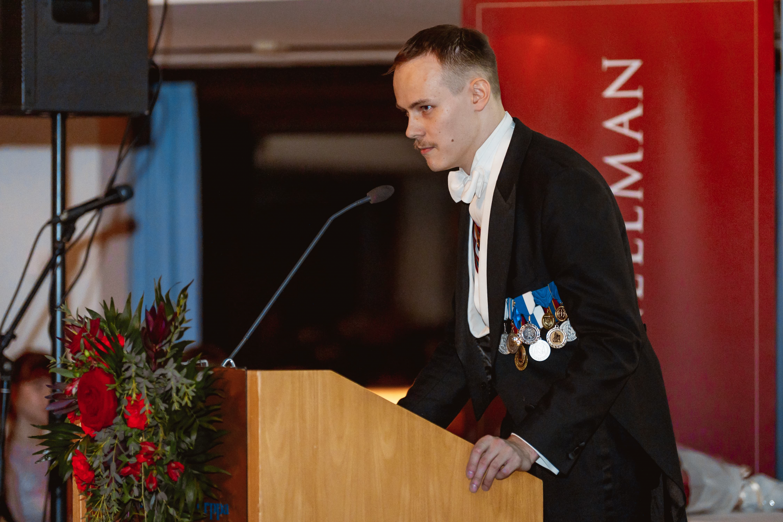 Mä oon tehnyt aika paljon ja ollut kaikessa mukana. Mut palkittiin vuonna 2023 Wappubooleilla “Jokapaikahöylä” -tittelillä, ja ehkä tässä sen verran kehtaa kehua itseään, että mä oon kyllä ollut aika jokapaikanhöylä. En osaa nimetä mitään, mikä olisi jäänyt kokematta – ehkä kerho- tai valiokuntatoimintaa lukuun ottamatta. Mutta muuten oon ollut mukana vähän kaikessa, myös Codexissa ja osakuntatoiminnassa. Ei jää kaduttamaan, et jotain olisi jäänyt tekemättä, mutta ei myöskään oikeastaan kaduta paljoa se, mitä on tullut tehtyä. Phuksikapteenin pesti on ehdottomasti yksi rakkaimmista muistoista. KV-viikot ja Spex taas tarjosivat sellaista yhdessä olemisen ja luovuuden aikaa, jota ei ihan heti löydy opiskelijaelämän ulkopuolelta. Opiskeluaikojen jälkeen ei ehkä tuu sellasia hetkiä et ollaan kaikki vaan jossain ulkomailla, opiskelijoina ja porukkana vailla suunnitelmaa pitämässä pidetään hauskaa yhdessä ennalta tuntemattomien ihmisten kesken. Ei myöskään tuu vietettyä viikkoa teatterissa näytöskuplassa. Ja sitten tietysti täytyy nostaa esiin Vis Moot, Vis Moot ja Vis Moot! Se sytytti intohimon välimiesmenettelyihin ja esiintymiseen. Ja pakko mainita tietysti myös vaihto – puoli vuotta ulkomailla, yksin, uusien ihmisten ja kurssien keskellä. Se opetti paljon itsestä.